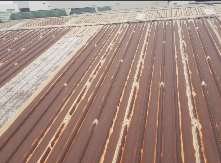 此屋面經(jīng)本公司產(chǎn)品神奇的銹蝕轉(zhuǎn)換劑TC-RI進(jìn)行除銹;隔熱反射涂料TC-R-HI進(jìn)行隔熱處理后整體煥然一新、干凈整潔、無(wú)需拆除原有老舊銹蝕的屋面、增加屋面使用年限、造價(jià)低廉、具備隔熱效果,施工后屋面溫度與環(huán)境溫度一致、降低空調(diào)能耗。